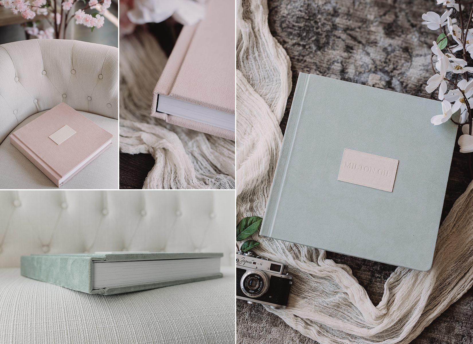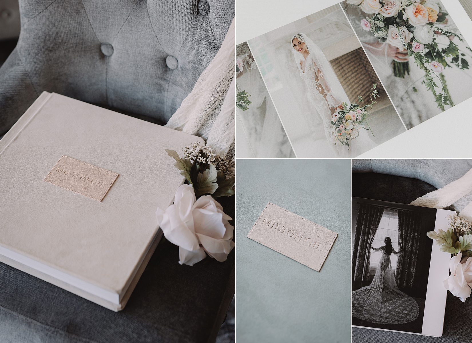 Here at Milton Gil, we offer a wide variety of options for you to select from when creating your Bridal Album. All of our albums are hand crafted and we offer a variety of sizes, covers and designs. You will have your own personal designer who will create a beautiful and classic layout. Please browse the options below and select the album of your dreams.